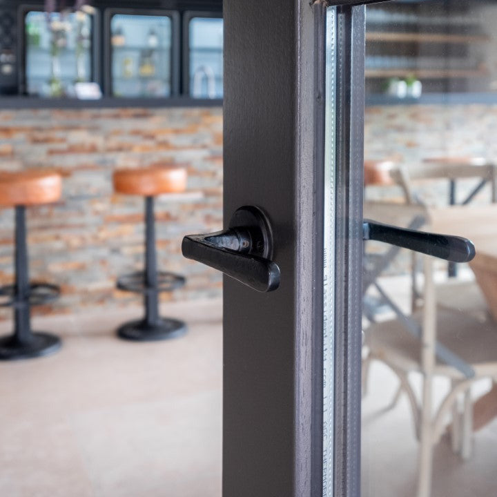 belgische Handwerkskunst. Mit runder Rosette in Metall Schwarz
