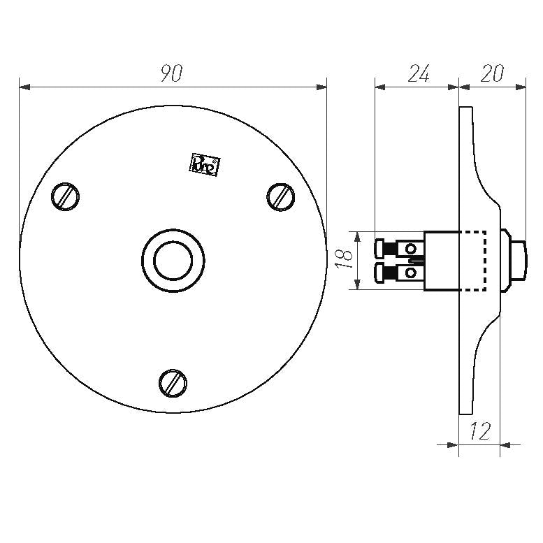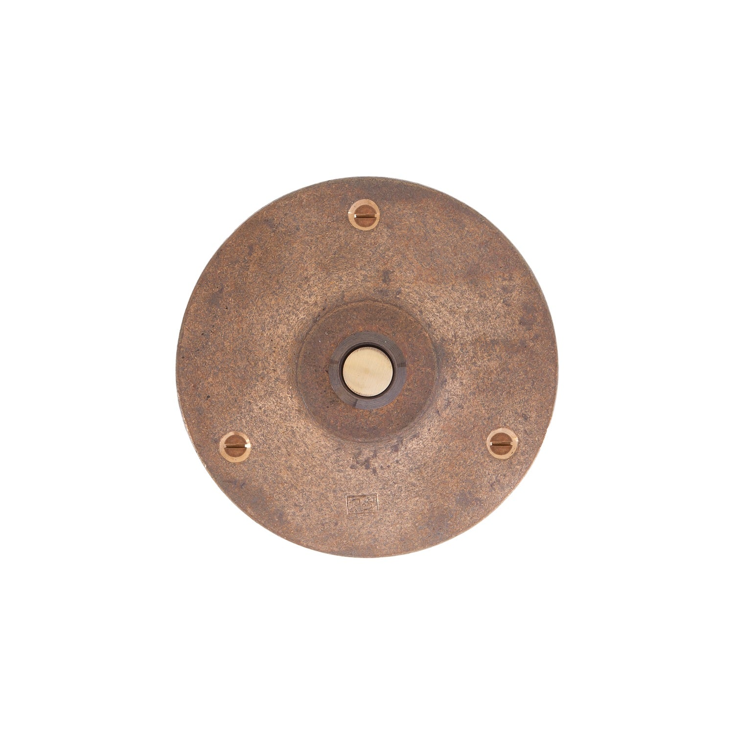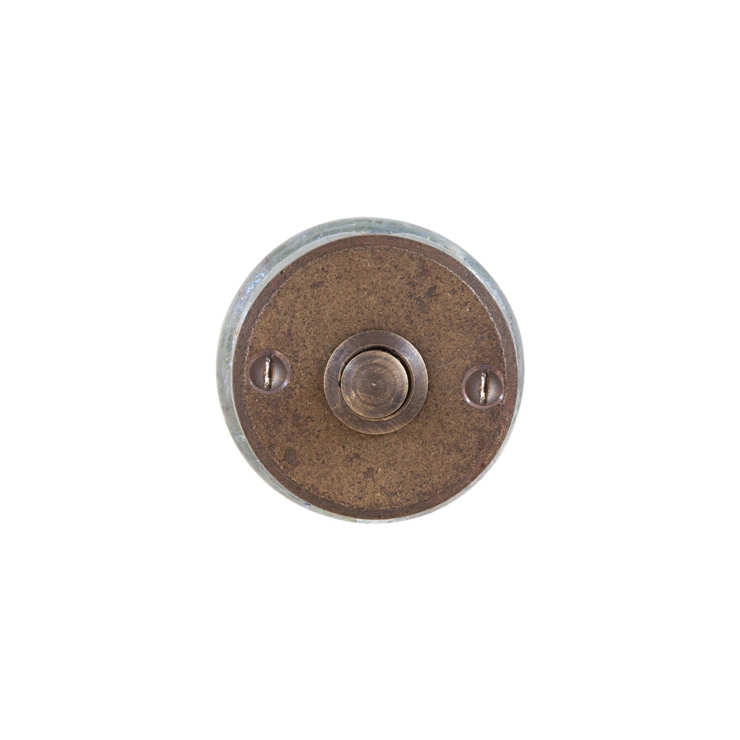 Klassische, formschöne Türklingel aus massivem Metall, erhältlich mit Durchmesser 50 mm oder 90 mm. Belgische Manufaktur, massive Ware in Sandformen gegossen.