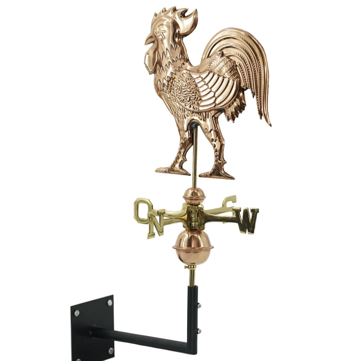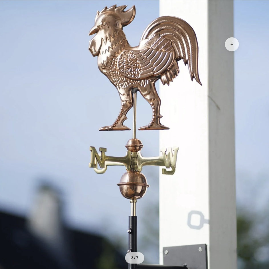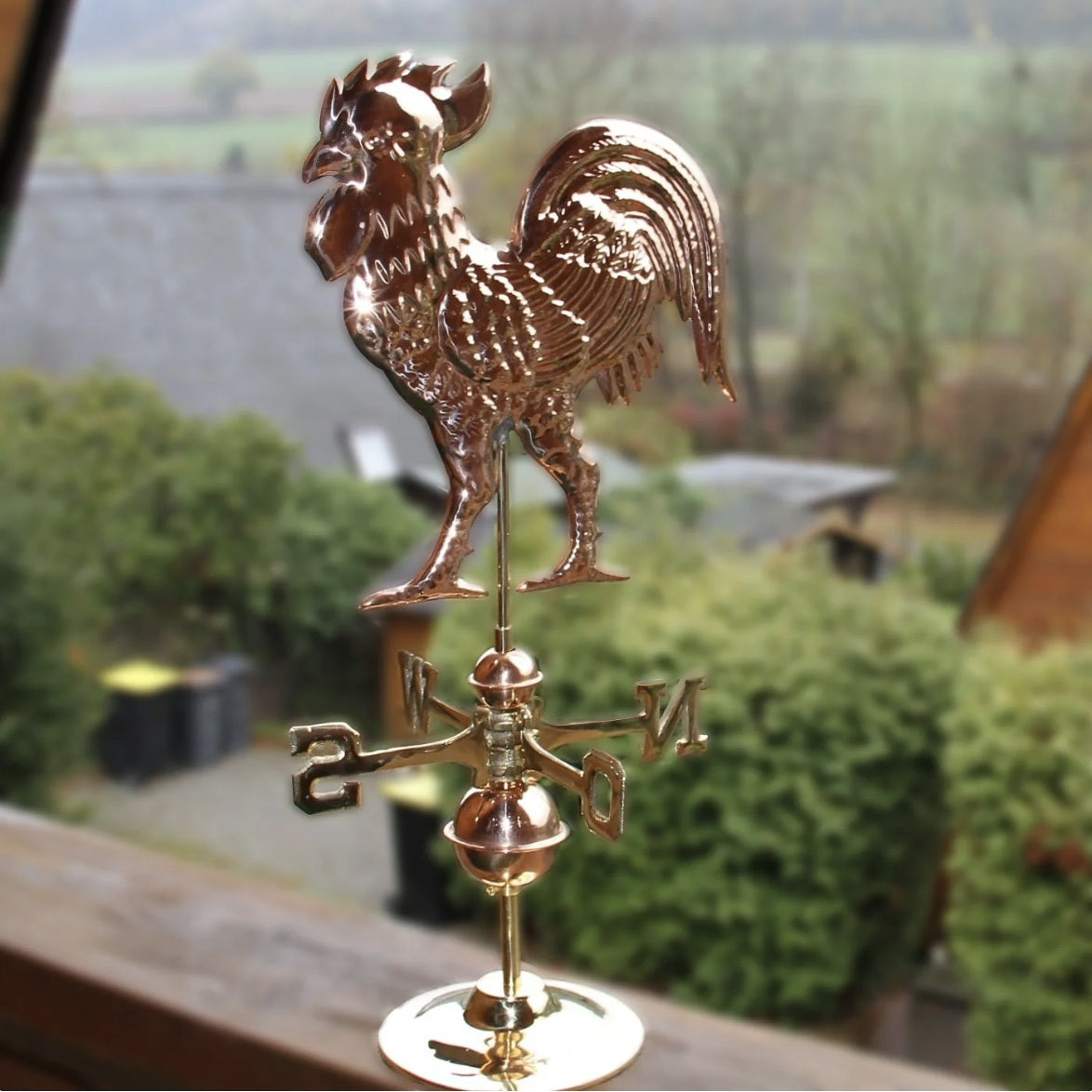Dieser kleine, dekorative Wetterhahn steht seinen großen Brüdern in Funktionalität, Qualität und Material in nichts nach. Er rückt jedoch gerne etwas näher in menschliche Gesellschaft, um sich im Detail bewundern zu lassen. Ob auf dem Standfuss oder mit einer Wandhalterung, ob auf dem Balkon, der Terrasse, einem kleinen Hühnerstall oder Spielhäuschen – dieses Wetterhähnchen ist das i-Tüpfelchen und eignet sich hervorragend als Einweihungsgeschenk.