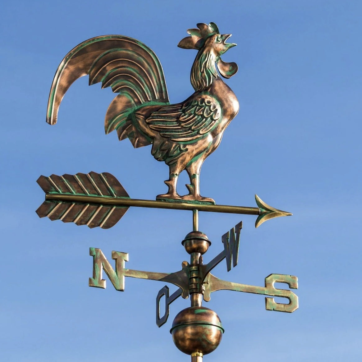 Ein echter Blickfang für jedes Dach: Schöner, großer Wetterhahn aus Kupfer und Messing.