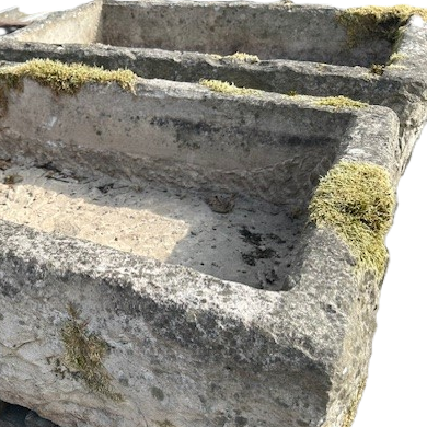 Dieser Sandsteintrog wird nach historischem Vorbild gefertigt und von Hand aus gelb-beigem Sandstein gehauen. Durch längere Lagerung hat er eine natürliche Moospatina entwickelt, die ihm eine Ausstrahlung verleiht, als wäre er „steinalt“.