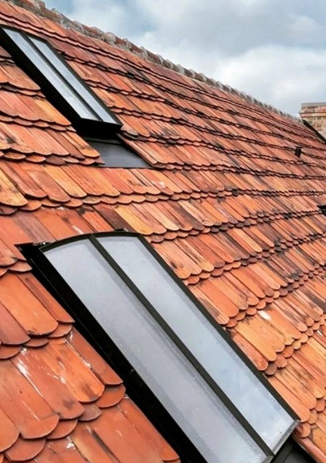 Stahldachfenster nach traditionellem Vorbild mit einem Stichbogen und einer senkrechten Sprosse. Es kann bei allen Bedachungsarten ab einer Dachneigung von 29° eingebaut werden. Das Fenster ist in der Standardausführung mit einem manuellen Aufstellriegel ausgestattet für das Lüften in verschiedenen Öffnungspositionen. Es ist antirostbehandelt und pulverbeschichtet in RAL 9005 Tiefschwarz matt.