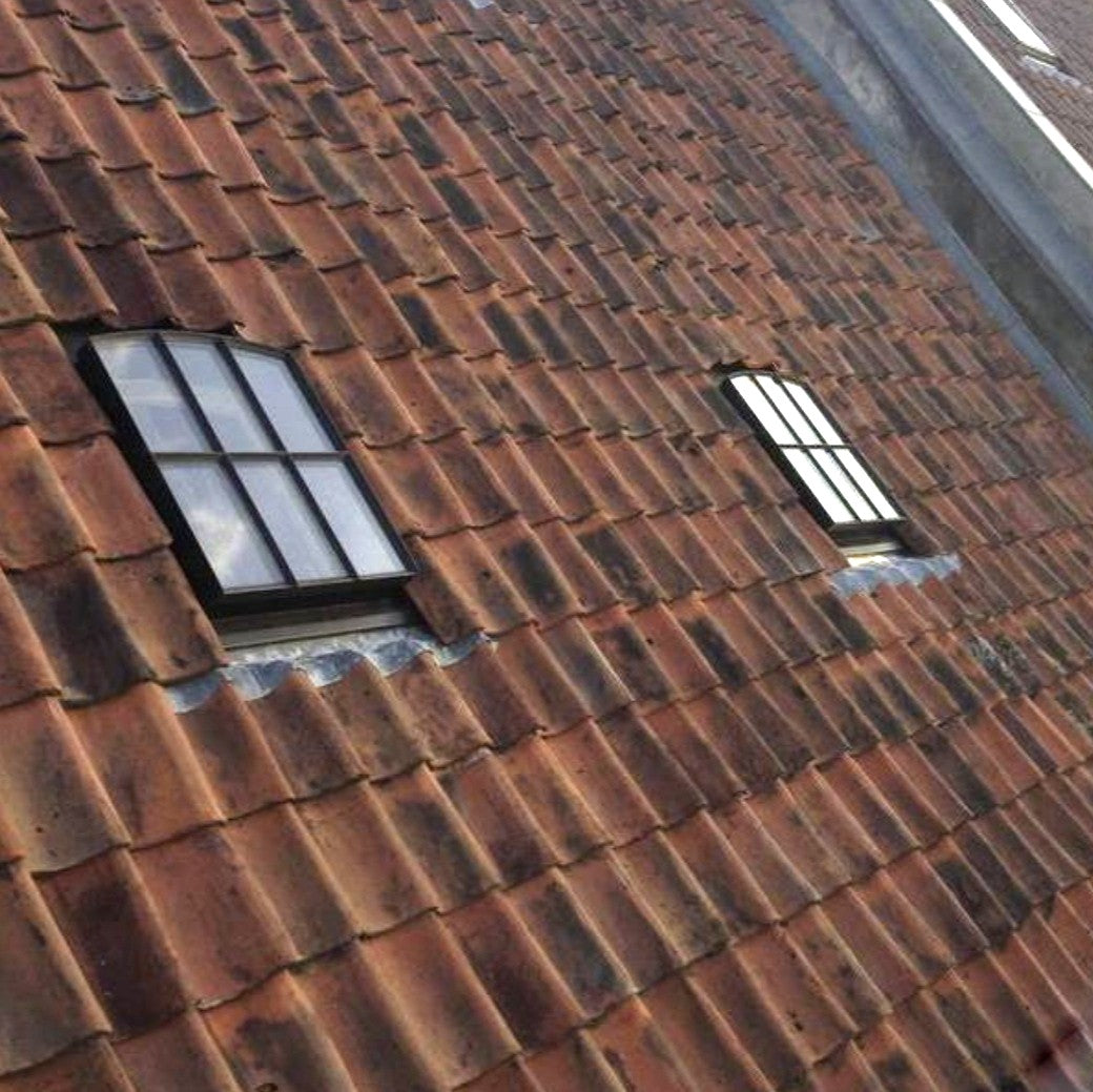 Stahl-Dachfenster mit Stichbogen und 6-er Sprosseneinteilung, antirostbehandelt und pulverbeschichtet in RAL 9005 Tiefschwarz matt. Geeignet für alle Bedachungsarten ab einer Dachneigung von 29°.