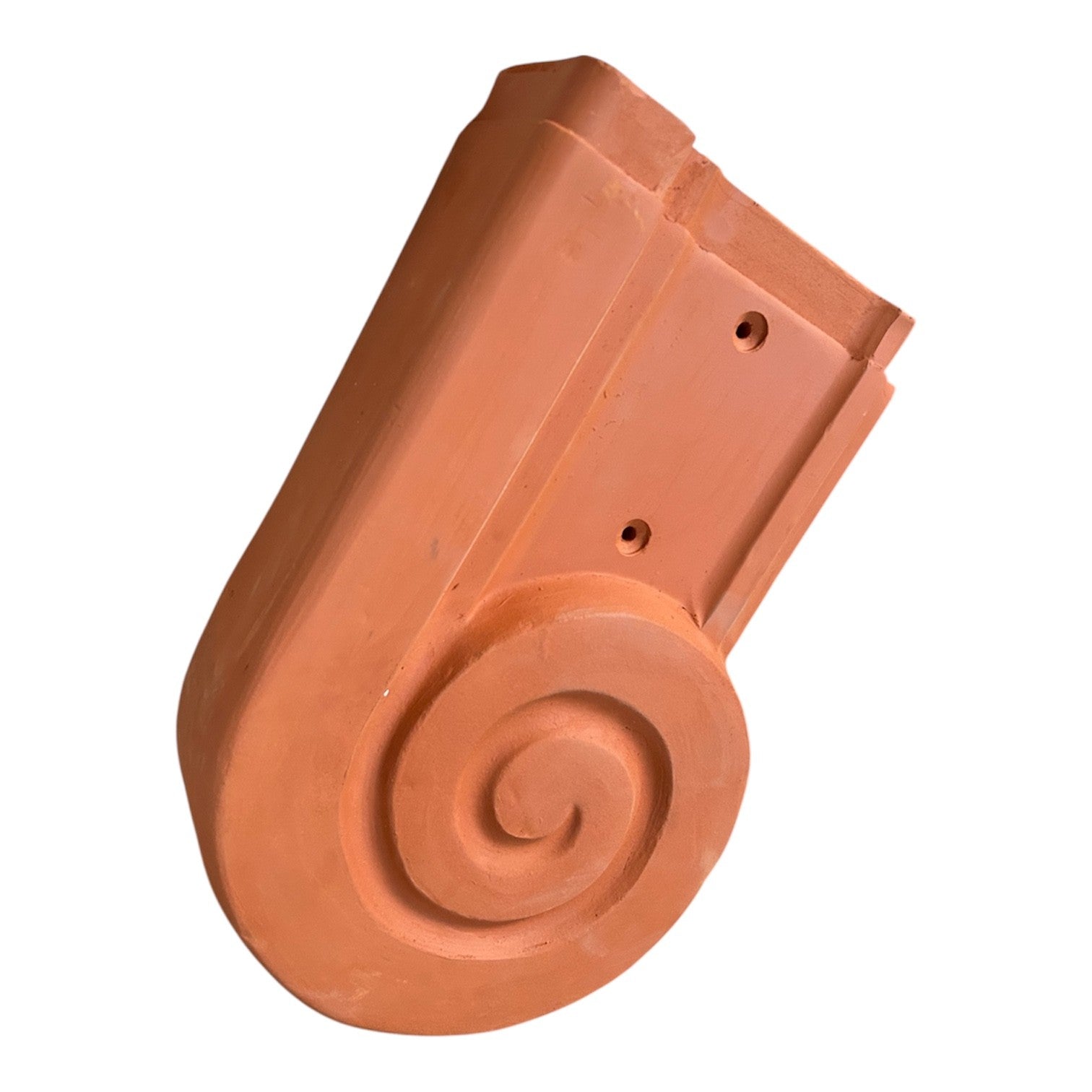 Der Abschlussziegel ist ein dekoratives und funktionales Element für den linken Dachabschluss in Schneckenform. Hergestellt aus hochwertigem Ton in deutscher Manufakturarbeit, verleiht sie Giebeln einen kunstvollen Akzent und schützt gleichzeitig die Dachkante.