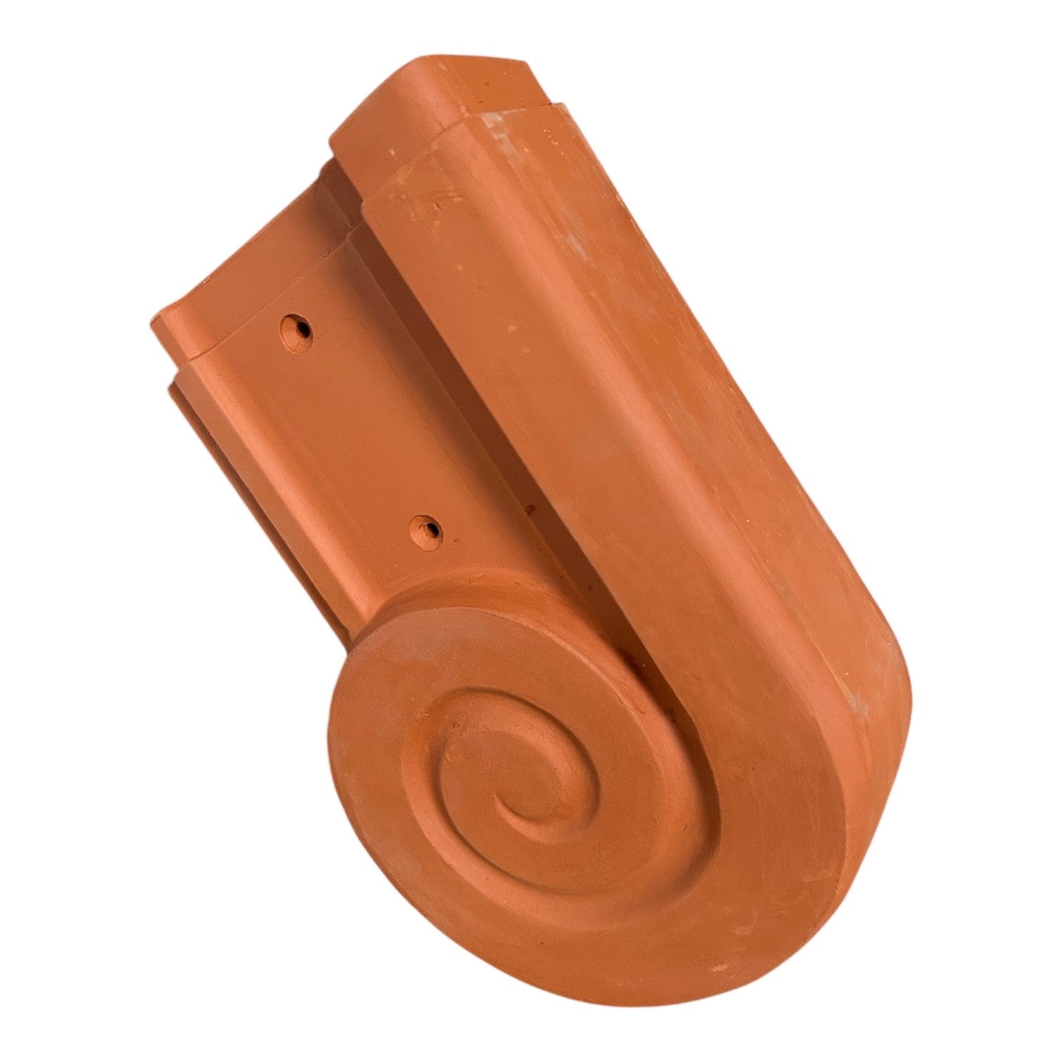 Formschöner Abschlussziegel für die rechte Giebelseite in Schneckenform. Für den traditionellen Ortgang Dachabschluss - gefertigt in deutscher Manufrakturqualität. Ideal zur stilgerechten Dachsanierung und für traditionelle historische Dächer.