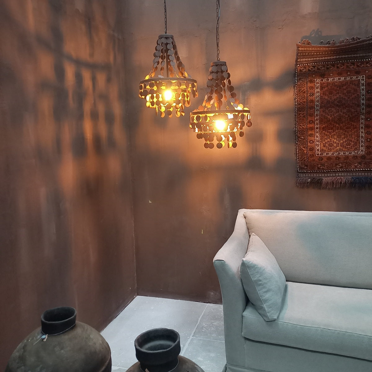 Nach der Fertigung wird jede Lampe den natürlichen Elementen ausgesetzt – ein Prozess, der ihr die unverwechselbare, gealterte Oberfläche verleiht. So entsteht ein Unikat mit authentischer Patina, das nicht nur Licht spendet, sondern Atmosphäre und Persönlichkeit in Ihren Wohnraum bringt.