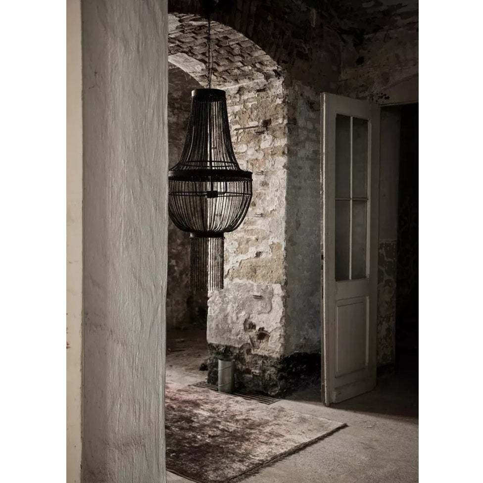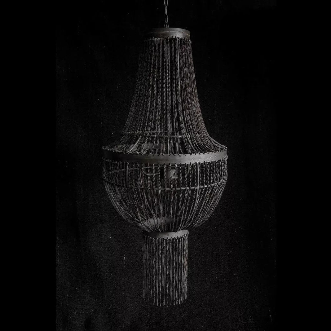 Nach der Fertigung wird der Leuchter bewusst den natürlichen Elementen ausgesetzt. So entsteht die charakteristische, verwitterte Oberfläche – eine Patina, die der Lampe ihre ganz eigene Geschichte verleiht. Dieser Prozess führt stets zu einem Unikat.