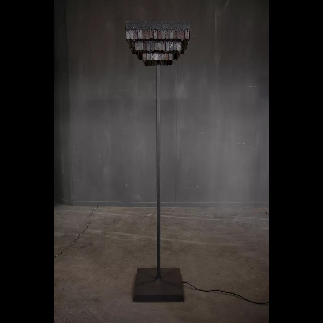 Die Stehleuchte "Gudha Square" setzt mit ihrem quadratischen Schirm einen klaren Akzent in jedem Wohnraum. Ihr geradliniger Eisenrahmen und die feinen, rechteckigen Anhänger verleihen ihr ein ausdrucksstarkes, gleichzeitig elegantes Erscheinungsbild. Frei im Raum platziert sorgt sie für ein warmes, atmosphärisches Licht, das sowohl moderne als auch rustikale Einrichtungen wirkungsvoll ergänzt.