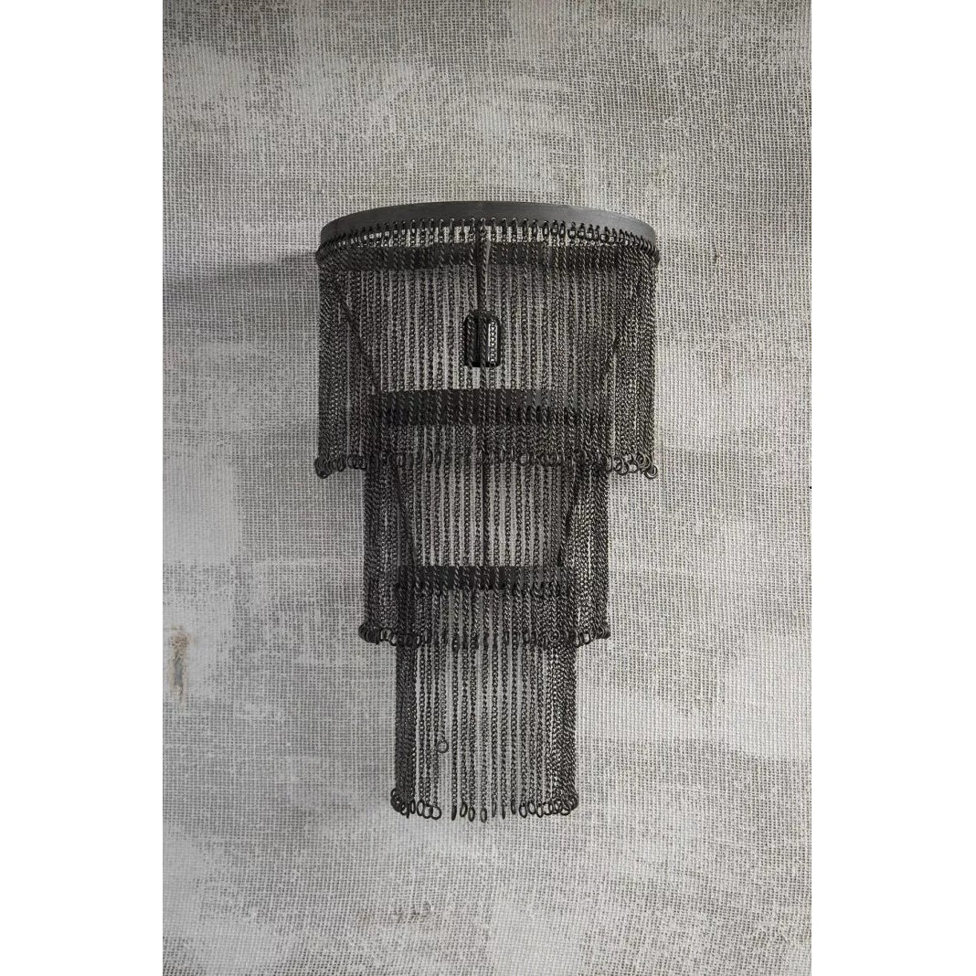 Das robuste Eisengestell kombiniert mit zahlreichen filigranen Ketten und Ösen erzeugt eine schnörkellose Eleganz und verleiht Blossom ihre charaktervolle Präsenz.
