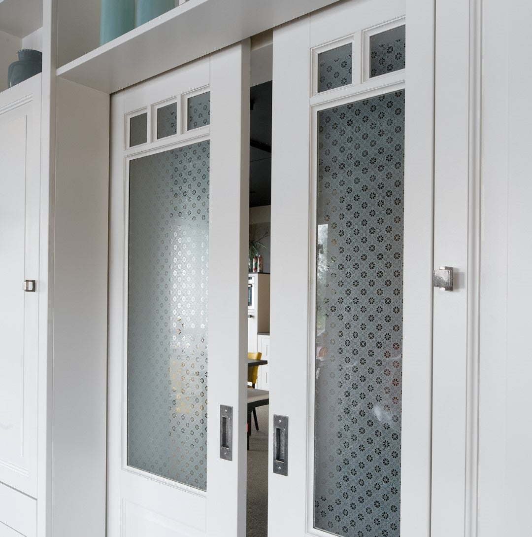 Türgriff "Belle Époque" Metall Weißbronze satiniert, Paar mit ovaler Rosette