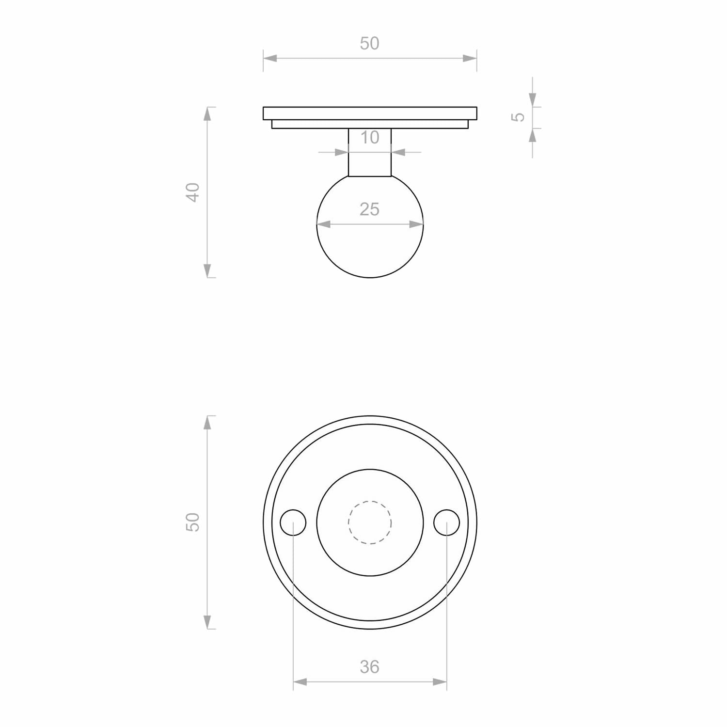 Höhe 40 mm x D Knauf 25 mm x D Platte 50 mm