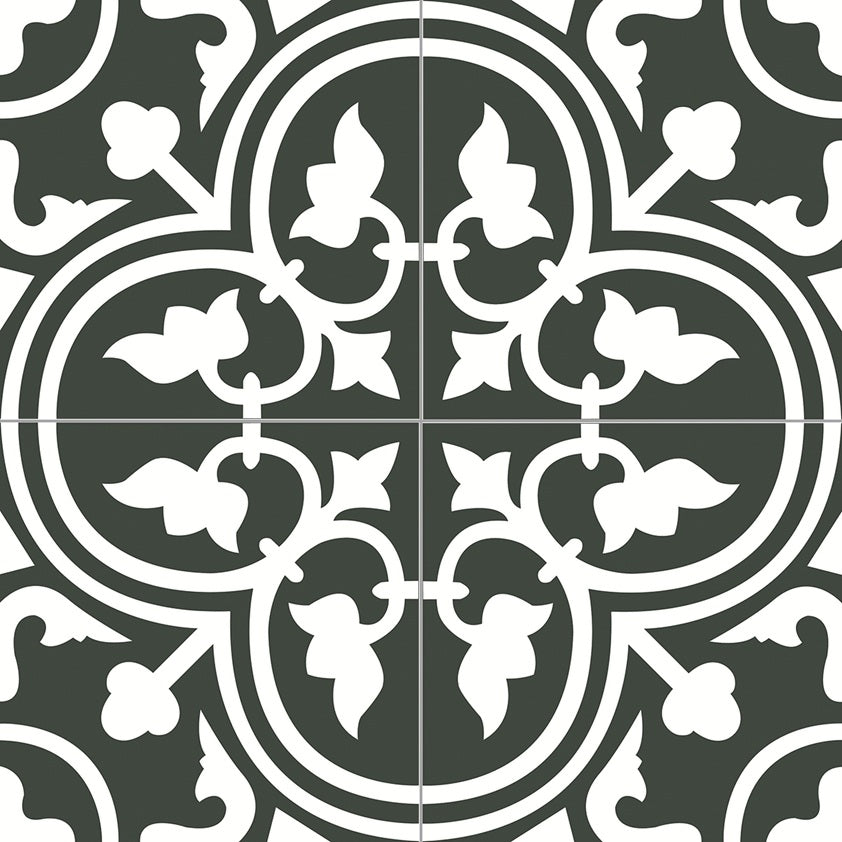 Diese stilvollen Zementfliesen mit schwarzem Grundton und weißem Dekor setzen ein ausdrucksstarkes Statement in jedem Wohnraum. Das helle Ornament hebt sich elegant vom dunklen Hintergrund ab und verleiht Flur, Küche oder Bad eine moderne, zugleich zeitlose Anmutung. Kombinieren Sie diese Fliese mit passenden Rand- und Unielementen für ein harmonisches Gesamtbild.