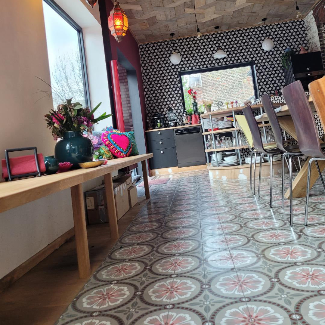 Für feine Akzente sorgt die rosa- sand- graufarbene Zementfliese in matter Oberfläche. Sie passt perfekt zu eleganten Fluren, hellen Landhausküchen, romantischen Bädern oder modernen Interieurs mit einem Hauch Nostalgie. Handgefertigte Qualität mit einem sanften Farbakzent.