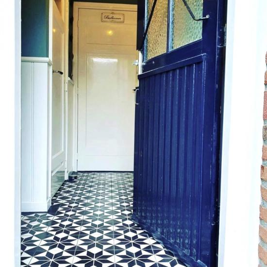 Ein Klassiker mit Charakter: Die schwarz-weiße Ornamentfliese bringt den Charme alter Stadtpaläste in Ihr Haus. Ob im Flur oder als Akzentwand – die kontrastreichen Muster wirken elegant und setzen klare Gestaltungslinien. Handgefertigt und besonders langlebig.