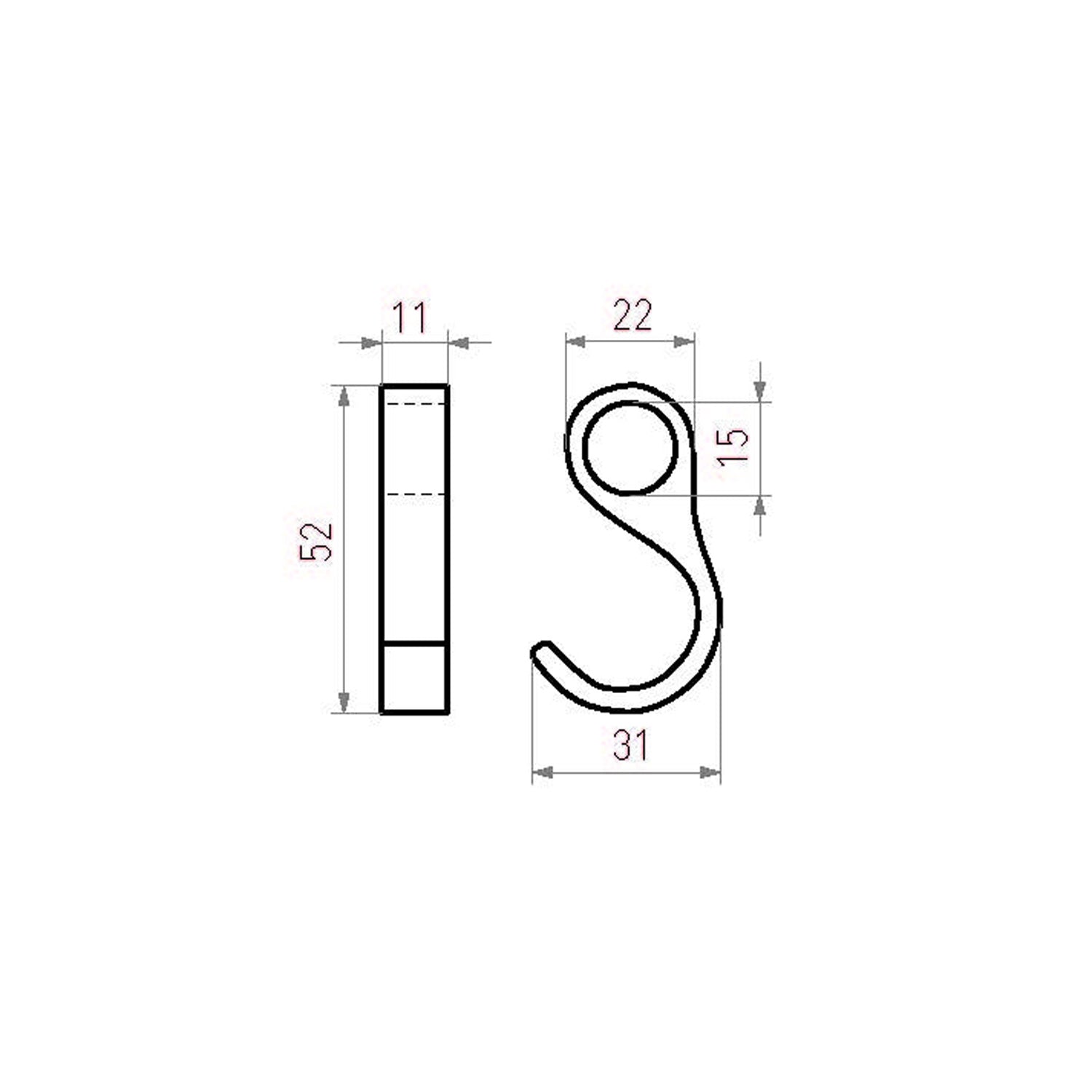 Maße: H 52 mm x B 11 mm x T 31 mm