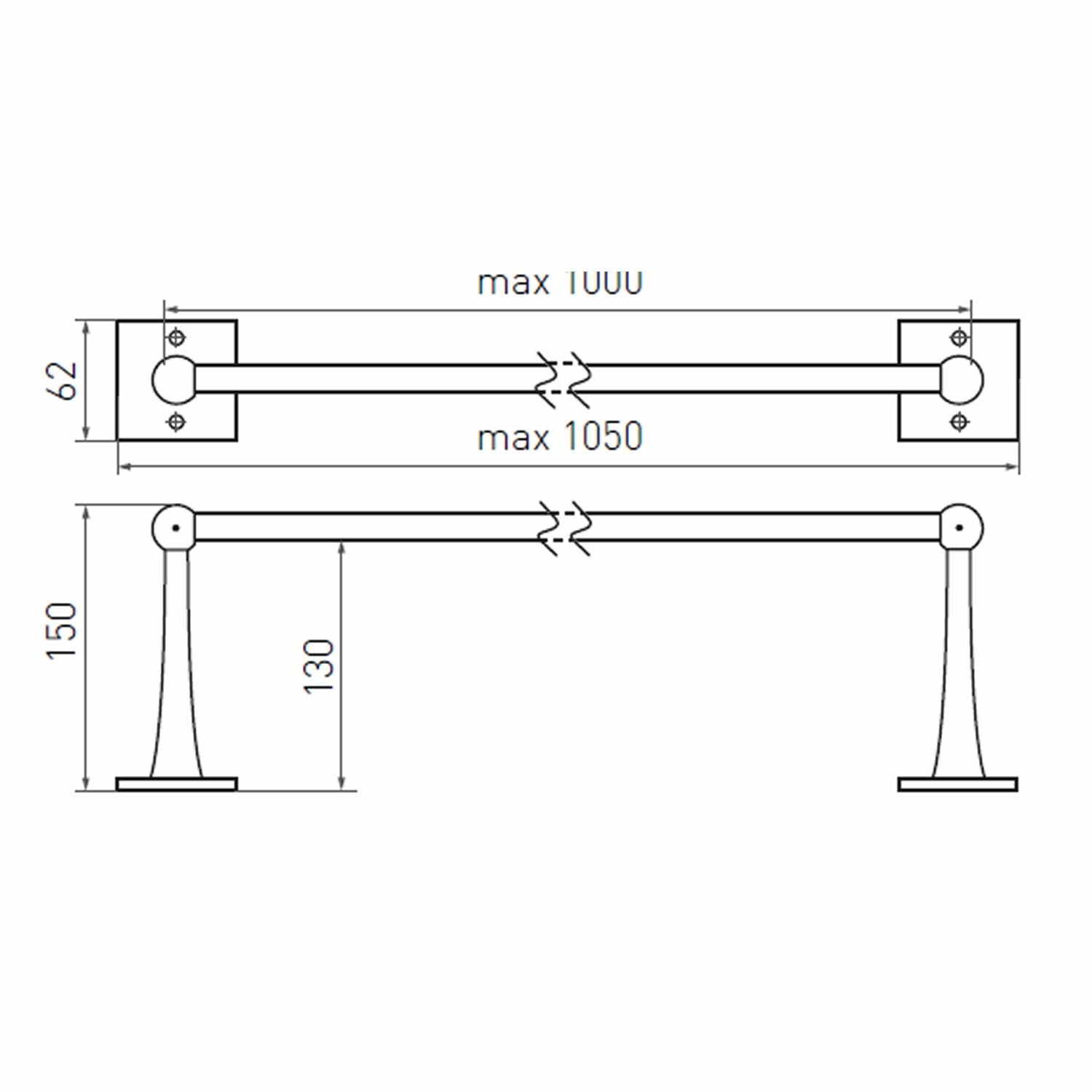Diese Handtuch- bzw. Utensilienstange kann ergänzt werden mit unseren S-Haken für eine flexible Gestaltung oder mit den geschlossenen Haken für einen sicheren Halt.