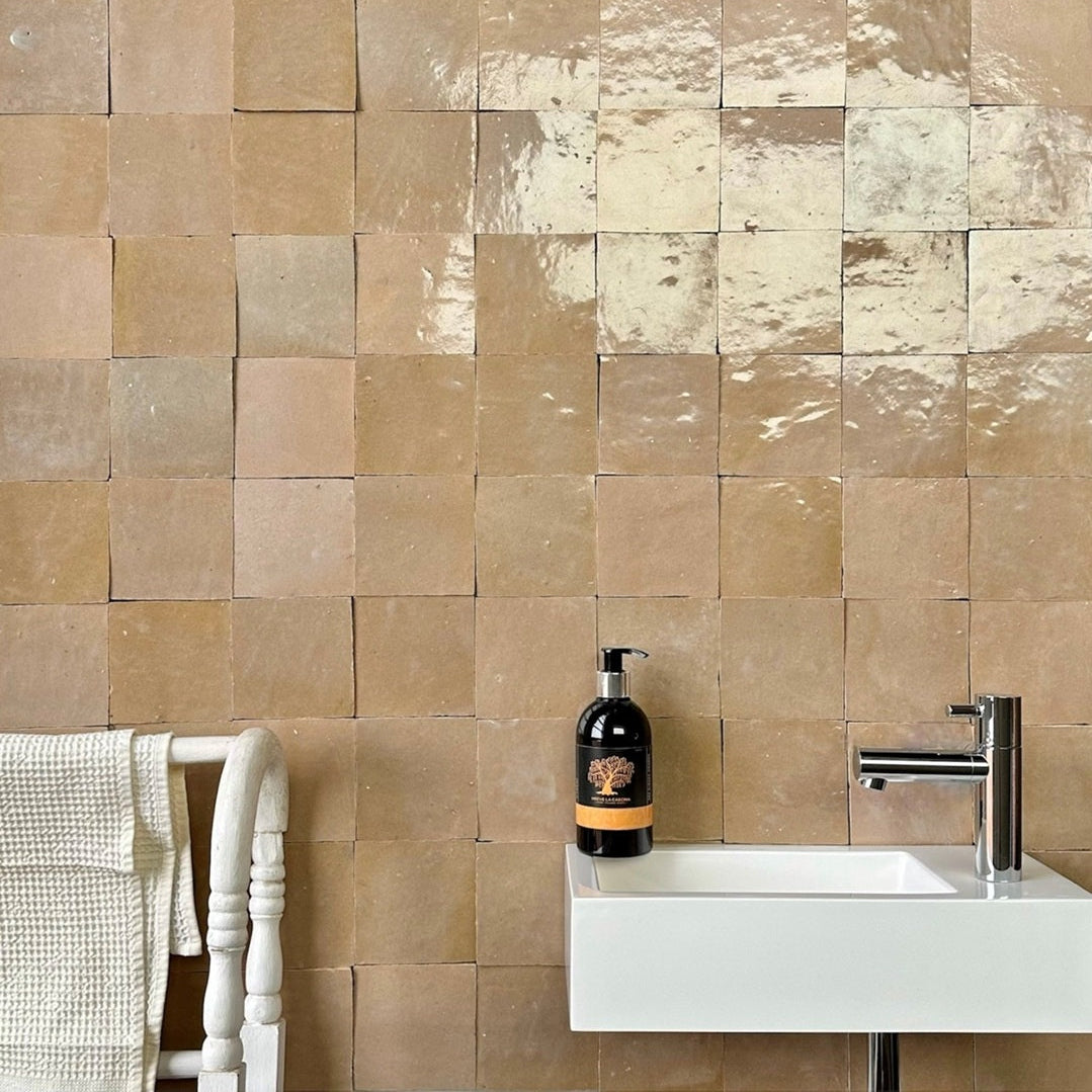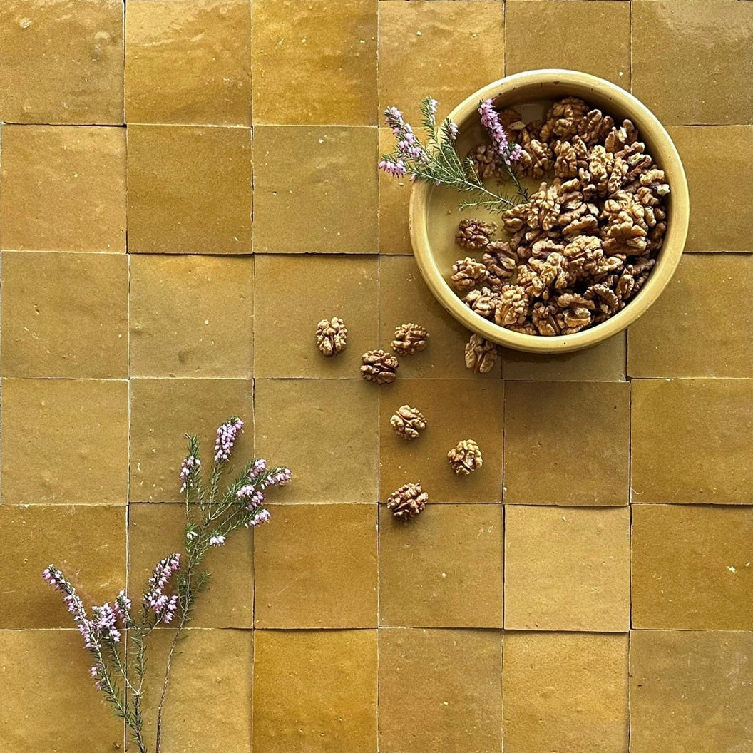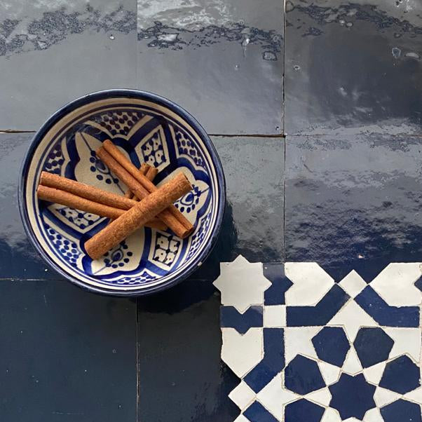 Handgefertigte Tonfliesen nach einem traditionellen, marokkanischen Herstellungsverfahren. Sowohl die unregelmäßige Oberfläche, die changierenden Farbnuancen als auch die leichten Maßdifferenzen sind authentische Effekte und warentypische Eigenschaften. Jede Fliese ist einzigartig.